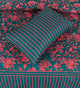 Enhance your bedroom with this elegant floral print bedding set in a soothing light blue shade. Made from soft, breathable cotton, this double-sized set includes a duvet cover and two matching pillowcases featuring a charming flower design in pink, purple, and green hues. Perfect for adding a fresh and cozy touch to your sleep space, this bedding set combines comfort and style for a restful night's sleep.