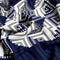 This stylish navy blue bed sheet set boasts a contemporary geometric pattern in shades of white and gray, adding a modern touch to bedroom décor. Crafted from soft, durable fabric, it includes a flat sheet and matching pillowcases for a coordinated look. The set is designed for comfort and easy maintenance, making it suitable for everyday use.