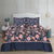 This elegant floral bedding set features a rich navy blue base adorned with delicate pink rose patterns in a digitally printed design. Made from a soft, breathable cotton blend, it includes a duvet cover and matching pillowcases that bring a fresh, romantic feel to any bedroom. The high thread count ensures durability and a smooth touch, perfect for cozy nights and stylish decor.