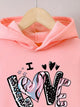 This stylish kids' hoodie is crafted from soft, warm fleece fabric, perfect for cooler weather. It features a front zipper and eye-catching pink heart prints on the chest and sleeves, adding a playful and trendy touch. The hood provides extra warmth and comfort, making it ideal for casual wear, school days, or outdoor activities.