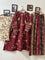 This elegant three-piece suit features a deep red base beautifully adorned with cream and green floral prints, offering a vibrant yet classic look. The kurta is crafted from soft, breathable cotton lawn fabric, showcasing full sleeves with intricate striped sleeve detailing for added charm. The set includes matching floral printed trousers in a beige shade and a striped dupatta with complementary colors and floral motifs. Perfect for casual wear or festive occasions, this suit combines comfort and style, making it an essential addition to any wardrobe.