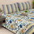 Experience vibrant comfort with this floral cotton bedding set featuring a lively mix of blue and golden flowers against a white backdrop. Complemented by striped pillow covers in coordinating tones, this set is crafted from soft and breathable cotton, ensuring durability and a restful sleep. It adds a lively and refreshing ambiance to any bedroom setting.