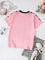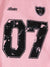 This trendy women's graphic T-shirt features a soft pink fabric with a flattering V-neckline trimmed in black. It includes playful black bow prints along the sleeves and a bold vintage-style "07" number printed on the front for a sporty look. Perfect for casual wear, pairing effortlessly with jeans or shorts for a stylish summer outfit.